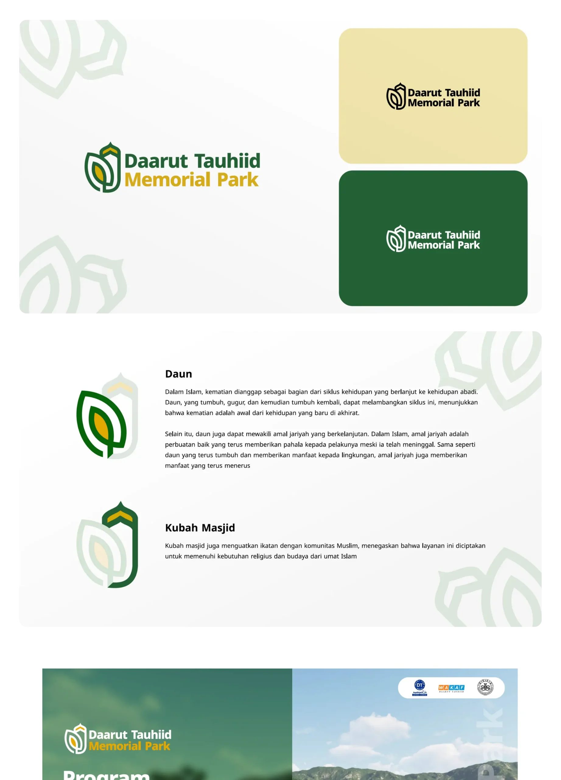 Brand development Daarut Tauhiid Memorial Park, elegan, islami, dan penuh ketenangan.